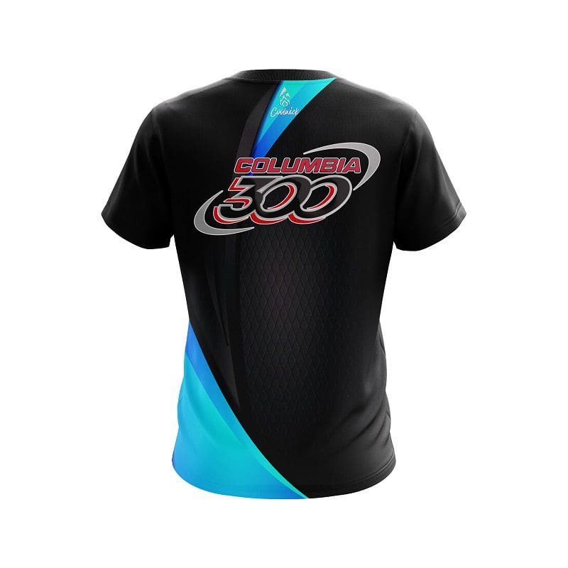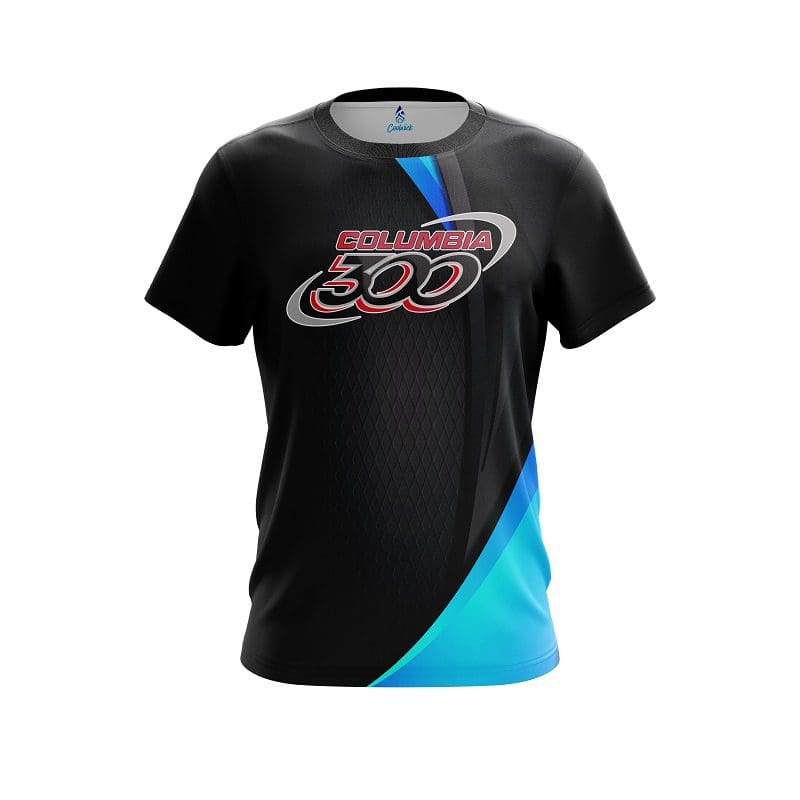 Stay 40% cooler with CoolWick. Our Columbia 300 Carbon Aqua Swirl CoolWick Bowling Jerseys are made of two different fabrics with the back being our CoolWick technology fabric that helps wick moisture away and helps air flow more easily through the fibers.