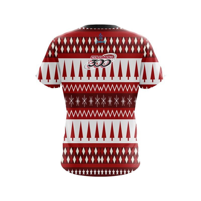 Stay 40% cooler with CoolWick. Our Columbia 300 Christmas Spirit CoolWick Bowling Jerseys are made of two different fabrics with the back being our CoolWick technology fabric that helps wick moisture away and helps air flow more easily through the fibers.