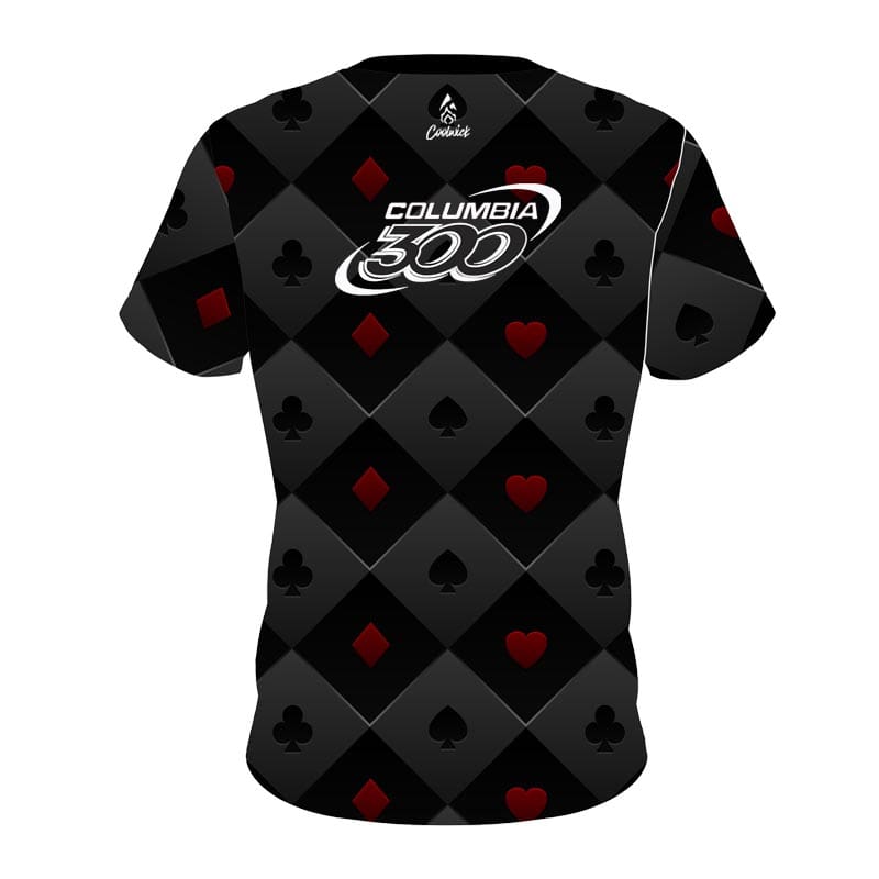 Stay 40% cooler with CoolWick. Our Columbia 300 Deck of Cards CoolWick Bowling Jerseys are made of two different fabrics with the back being our CoolWick technology fabric that helps wick moisture away and helps air flow more easily through the fibers.
