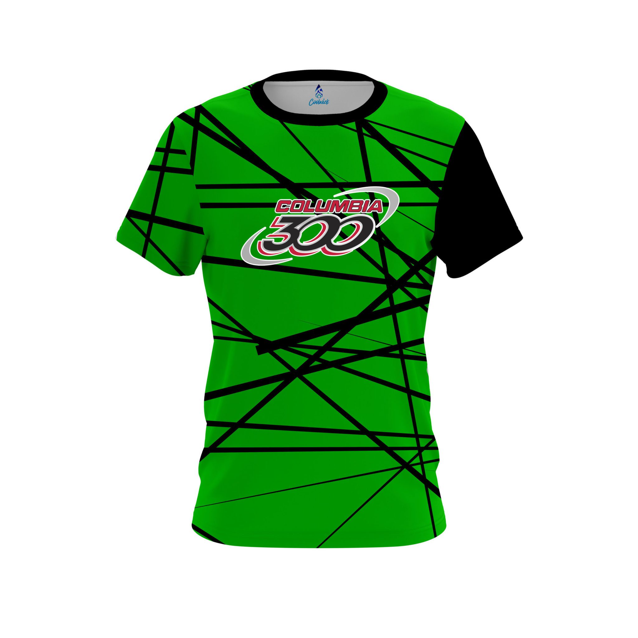Stay 40% cooler with CoolWick. Our Columbia 300 Distracted Lime Green CoolWick Bowling Jerseys are made of two different fabrics with the back being our CoolWick technology fabric that helps wick moisture away and helps air flow more easily through the fibers.