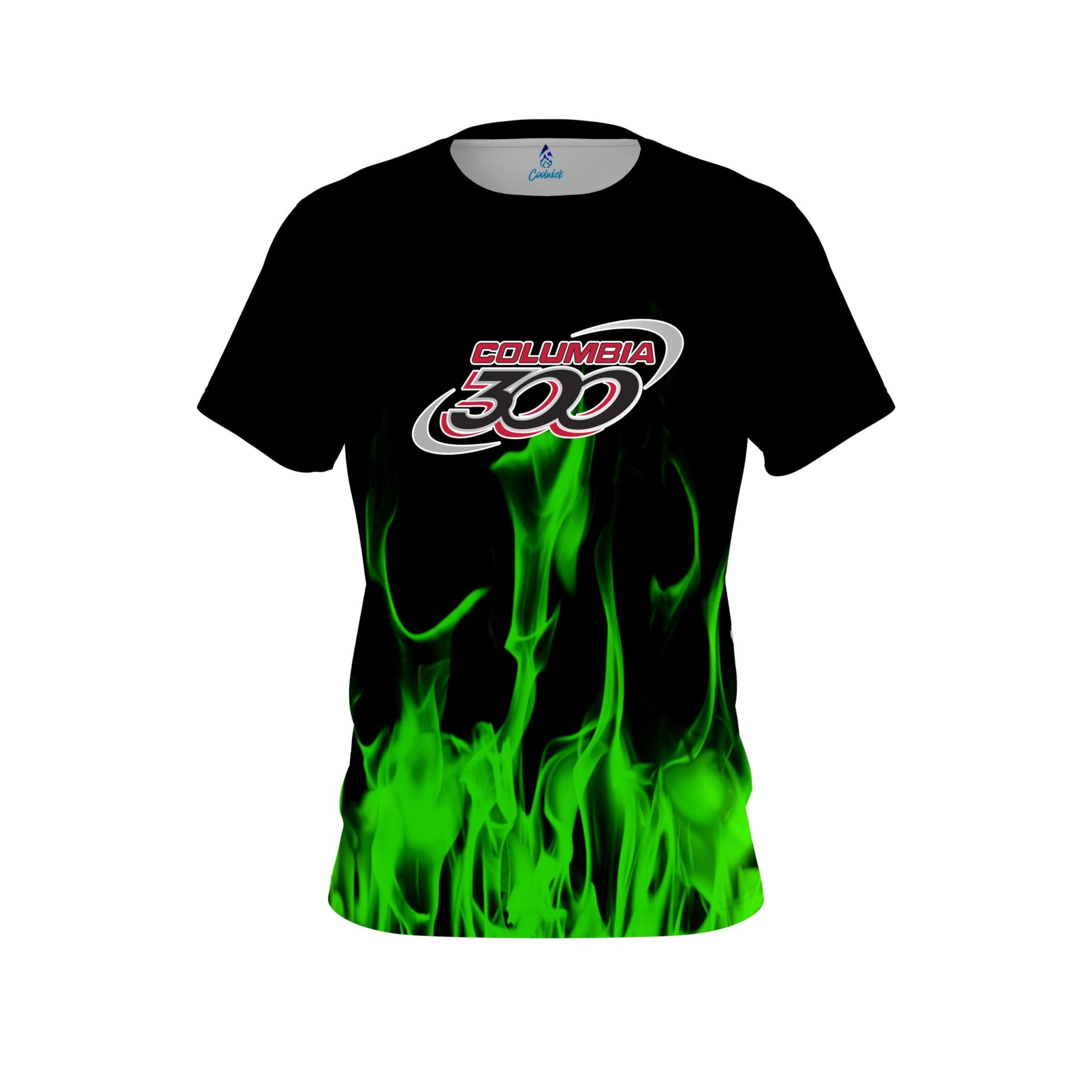 Stay 40% cooler with CoolWick. Our Columbia 300 Green Flame CoolWick Bowling Jerseys are made of two different fabrics with the back being our CoolWick technology fabric that helps wick moisture away and helps air flow more easily through the fibers.