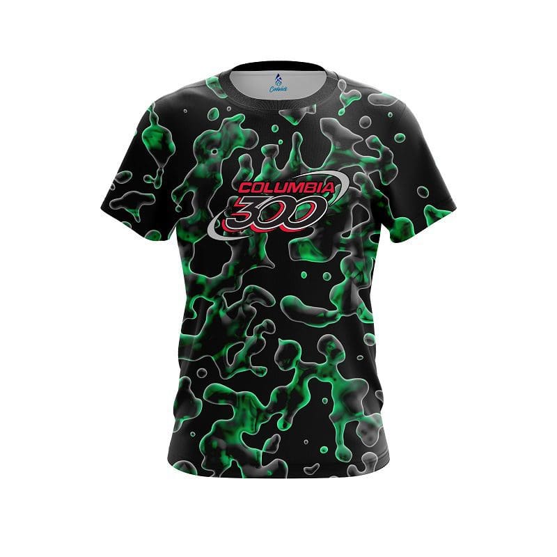 Stay 40% cooler with CoolWick. Our Columbia 300 Green Flowing Fluid CoolWick Bowling Jerseys are made of two different fabrics with the back being our CoolWick technology fabric that helps wick moisture away and helps air flow more easily through the fibers.