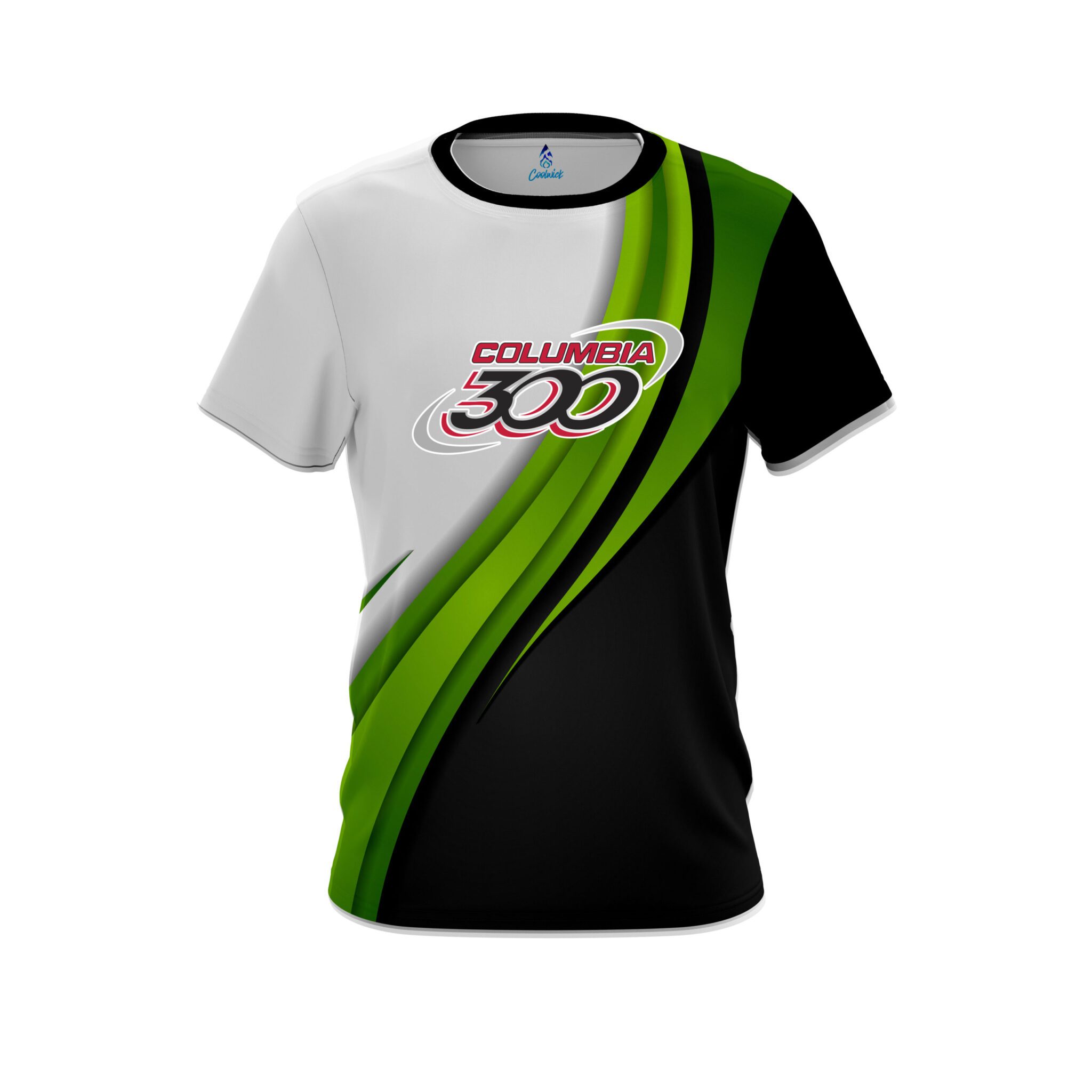 Stay 40% cooler with CoolWick. Our Columbia 300 Green Flutter CoolWick Bowling Jerseys are made of two different fabrics with the back being our CoolWick technology fabric that helps wick moisture away and helps air flow more easily through the fibers.