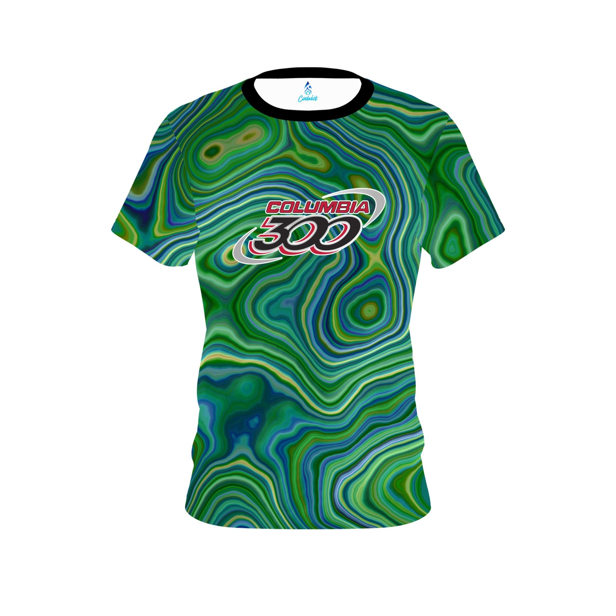 Stay 40% cooler with CoolWick. Our Columbia 300 Green Hallucinate CoolWick Bowling Jerseys are made of two different fabrics with the back being our CoolWick technology fabric that helps wick moisture away and helps air flow more easily through the fibers.