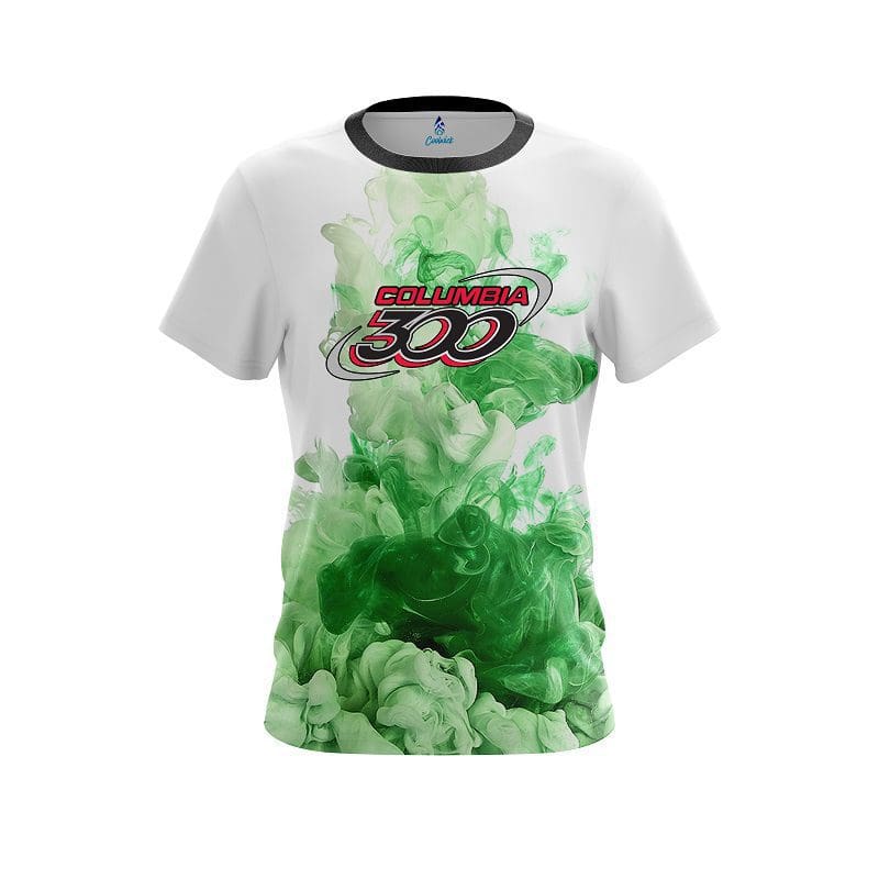 Stay 40% cooler with CoolWick. Our Columbia 300 Green ink Splash CoolWick Bowling Jerseys are made of two different fabrics with the back being our CoolWick technology fabric that helps wick moisture away and helps air flow more easily through the fibers.