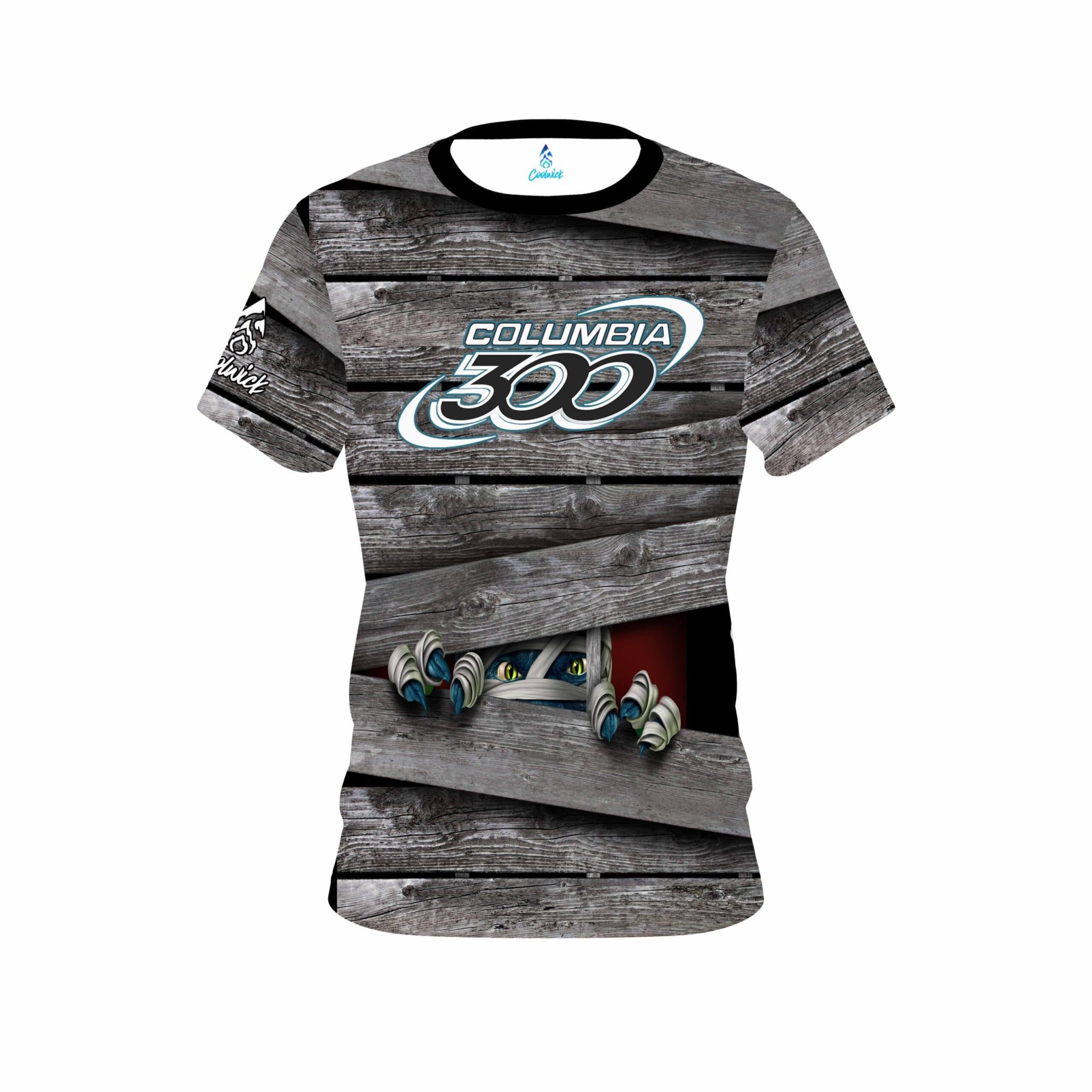 Stay 40% cooler with CoolWick. Our Columbia 300 Halloween Peek A Boo Monster Coolwick Bowling Jerseys are made of two different fabrics with the back being our CoolWick technology fabric that helps wick moisture away and helps air flow more easily through the fibers.