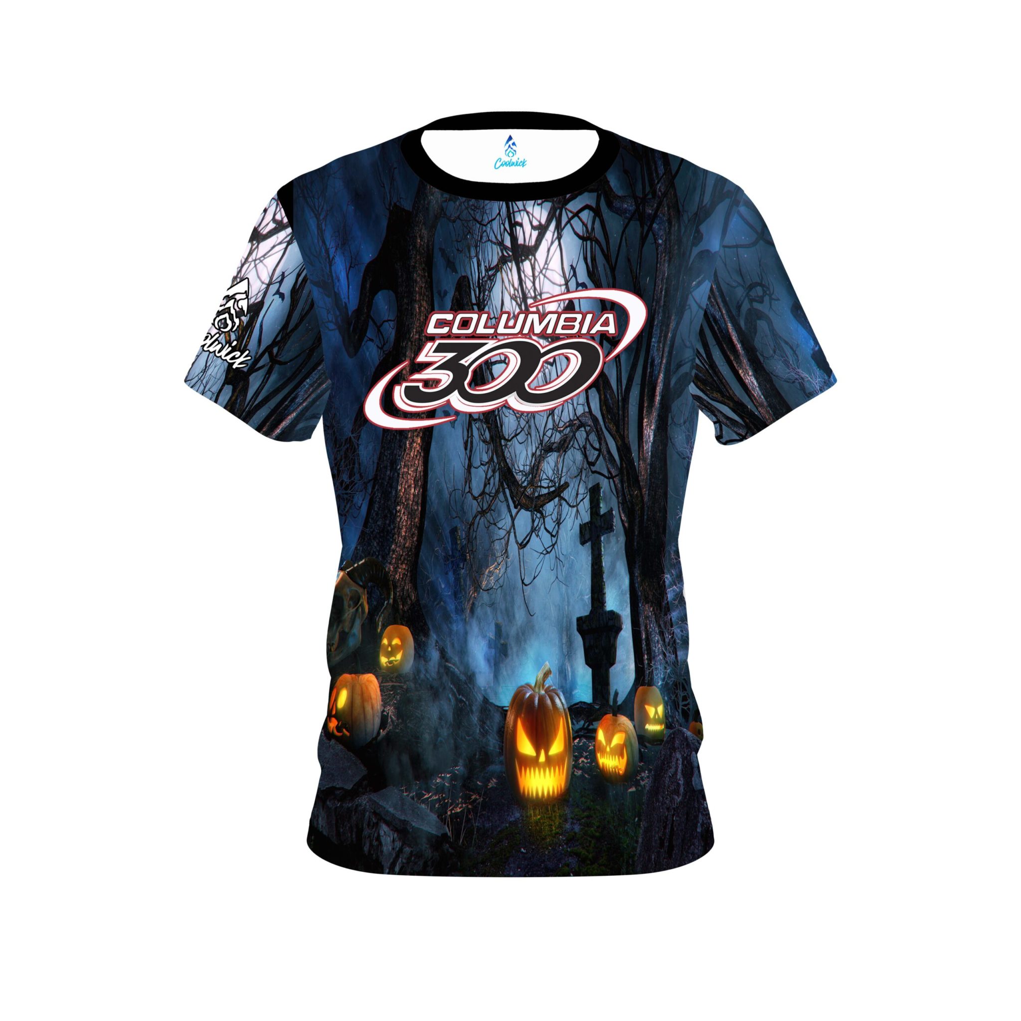 Stay 40% cooler with CoolWick. Our Columbia 300 Halloween Pumpkin Alley Coolwick Bowling Jerseys are made of two different fabrics with the back being our CoolWick technology fabric that helps wick moisture away and helps air flow more easily through the fibers.