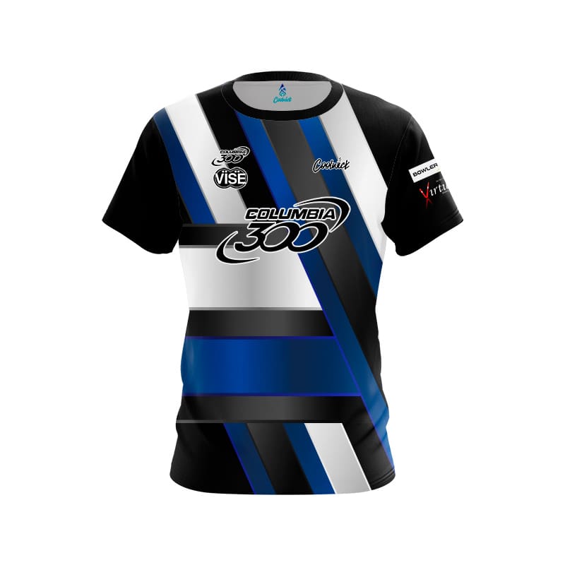 Bowl like the pros with our signature replica jerseys! Introducing the Columbia 300 Jakob Butturff Blue Black White Stripes CoolWick Bowling Jersey – designed with innovative fabrics for superior performance. Our dye-sublimated replica bowling jersey features the cutting-edge CoolWick technology fabric. You will be staying 40% cooler as it efficiently wicks away moisture and improves airflow.