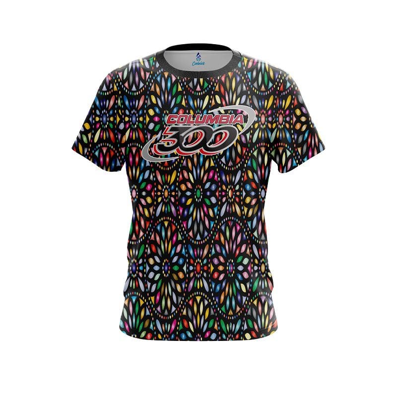 Stay 40% cooler with CoolWick. Our Columbia 300 Kaleidoscope Black CoolWick Bowling Jerseys are made of two different fabrics with the back being our CoolWick technology fabric that helps wick moisture away and helps air flow more easily through the fibers.