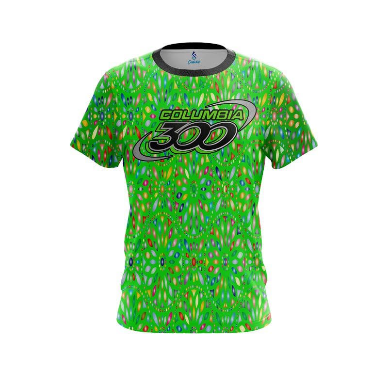 Stay 40% cooler with CoolWick. Our Columbia 300 Kaleidoscope Lime CoolWick Bowling Jerseys are made of two different fabrics with the back being our CoolWick technology fabric that helps wick moisture away and helps air flow more easily through the fibers.