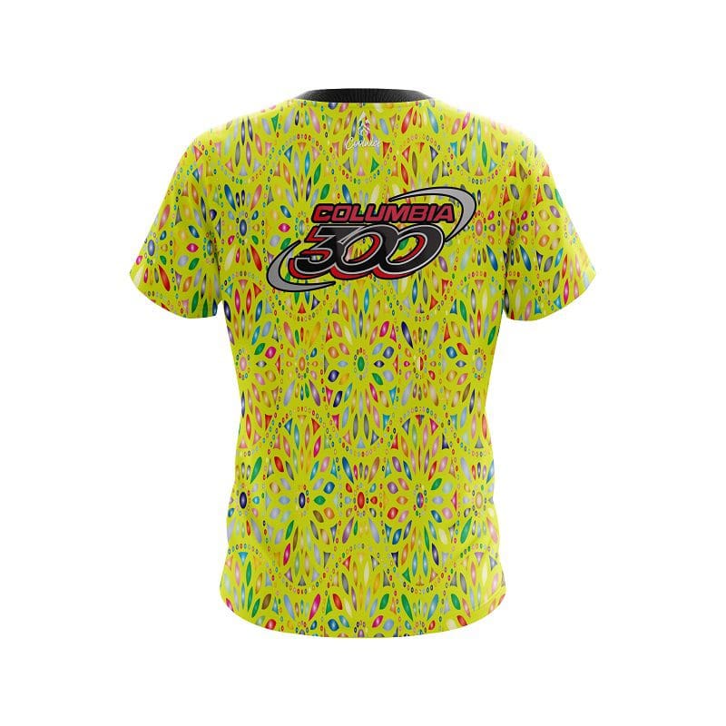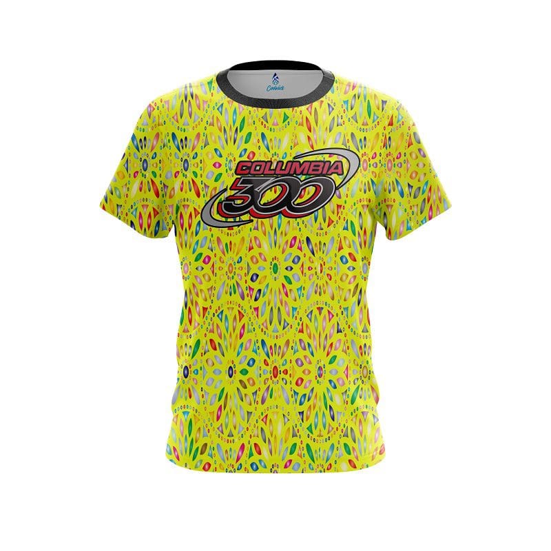 Stay 40% cooler with CoolWick. Our Columbia 300 Kaleidoscope Yellow CoolWick Bowling Jerseys are made of two different fabrics with the back being our CoolWick technology fabric that helps wick moisture away and helps air flow more easily through the fibers.