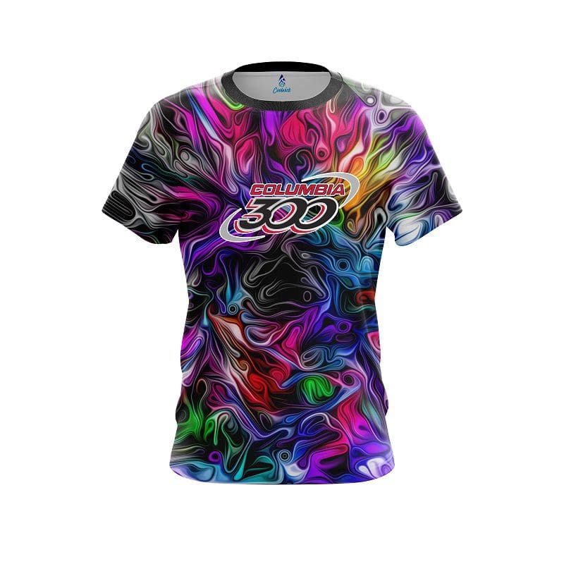 Stay 40% cooler with CoolWick. Our Columbia 300 Liquid Hypno Swirl CoolWick Bowling Jerseys are made of two different fabrics with the back being our CoolWick technology fabric that helps wick moisture away and helps air flow more easily through the fibers.