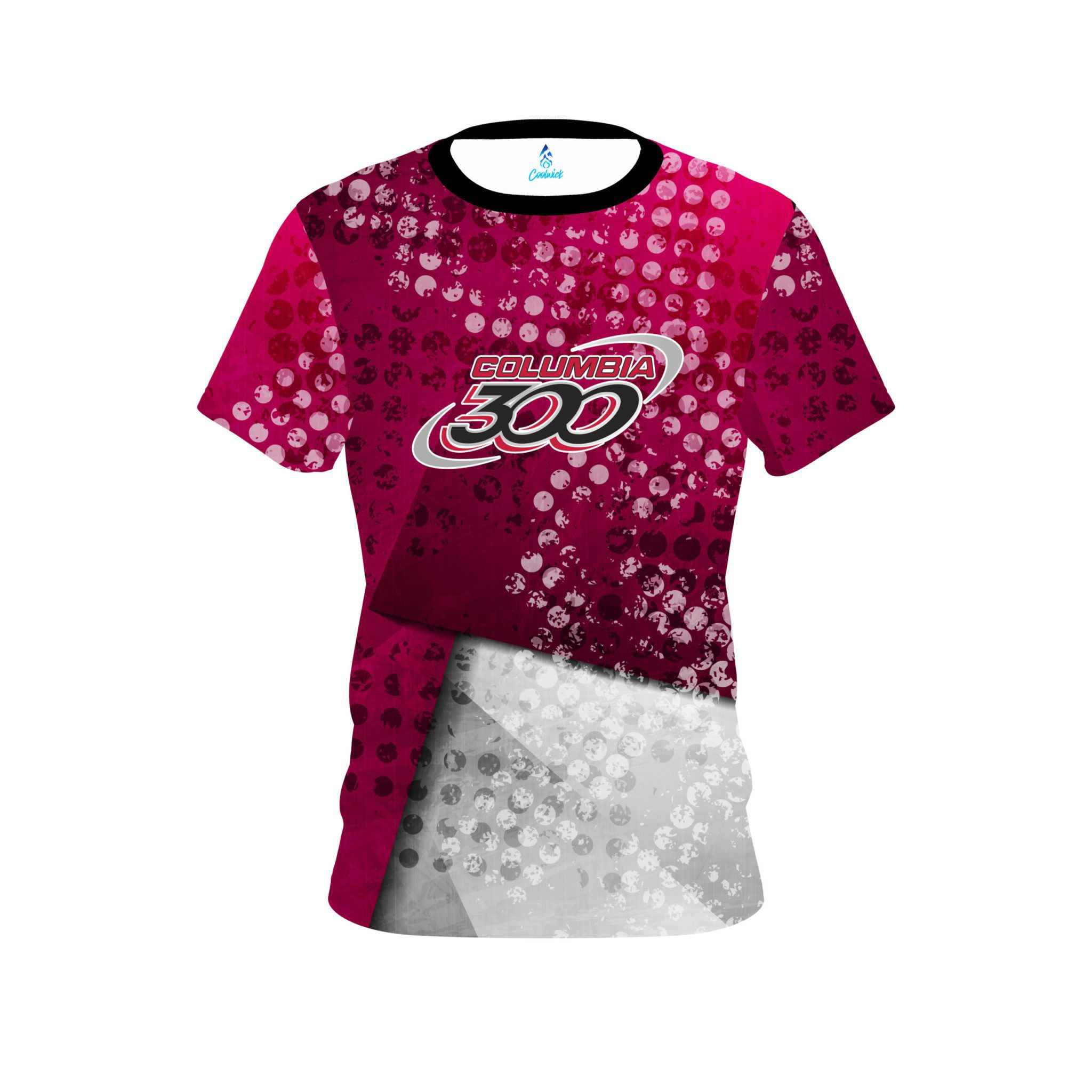 Stay 40% cooler with CoolWick. Our Columbia 300 Magenta Grungey CoolWick Bowling Jerseys are made of two different fabrics with the back being our CoolWick technology fabric that helps wick moisture away and helps air flow more easily through the fibers.