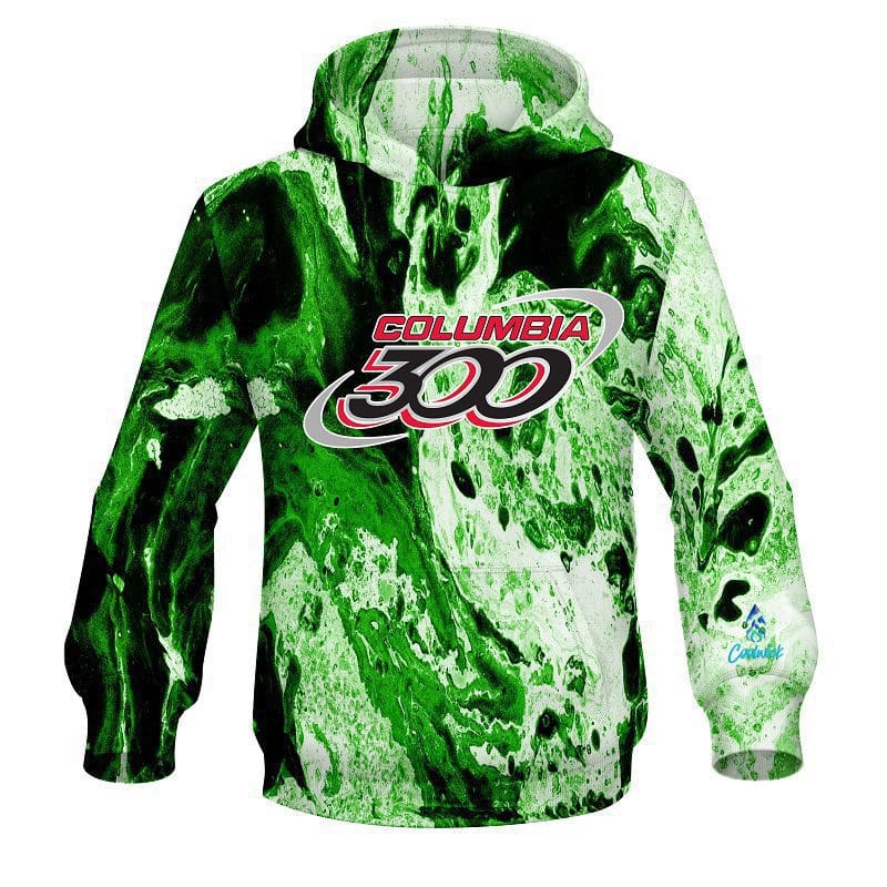 Designed, cut and sewn by hand our Columbia 300 Marble Green CoolWick Bowling Hoodies are made to keep you warm and comfy with HD graphics and eye catching style.