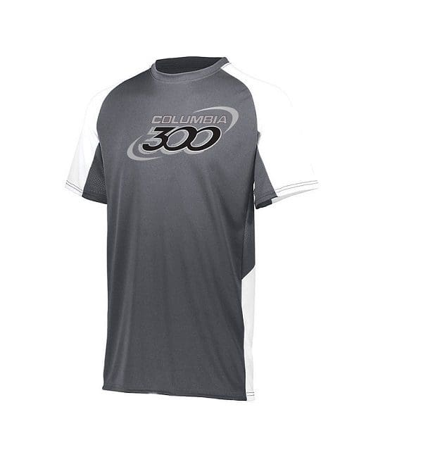 Columbia 300 Men’s Tyrant Performance Crew Bowling Shirt Dri-Fit Graphite White