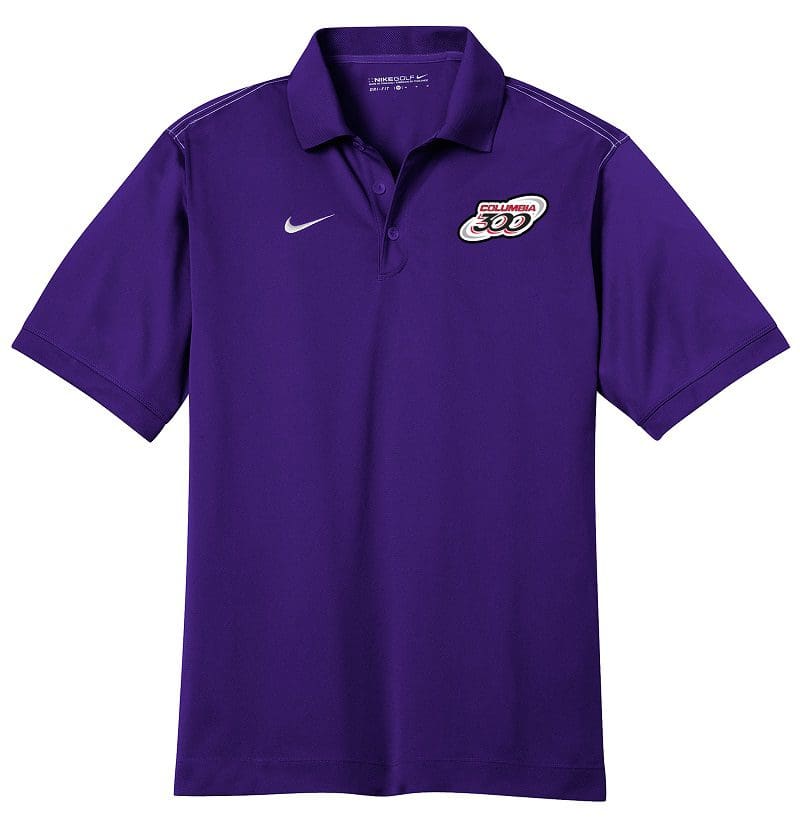 Columbia 300 Messenger Nike Purple Embroidery Dri-FIT Sport Swoosh Coolwick Polo