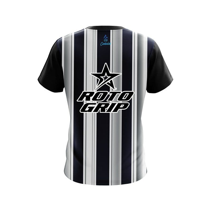 Stay 40% cooler with CoolWick. Our Roto Grip Navy Blue And Silver Retro CoolWick Bowling Jerseys are made of two different fabrics with the back being our CoolWick technology fabric that helps wick moisture away and helps air flow more easily through the fibers.
