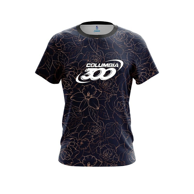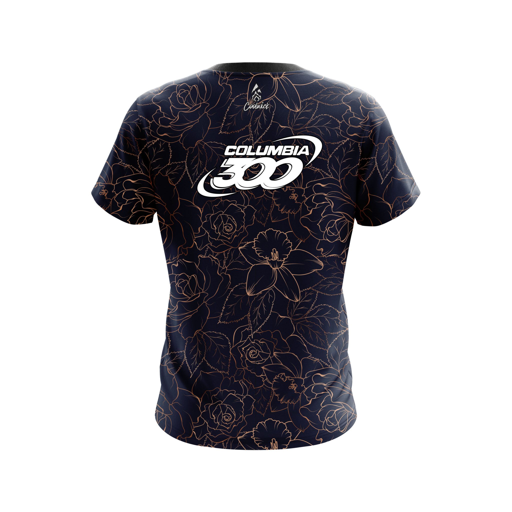 Stay 40% cooler with CoolWick. Our Columbia 300Navy rose gold CoolWick Bowling Jerseys are made of two different fabrics with the back being our CoolWick technology fabric that helps wick moisture away and helps air flow more easily through the fibers.