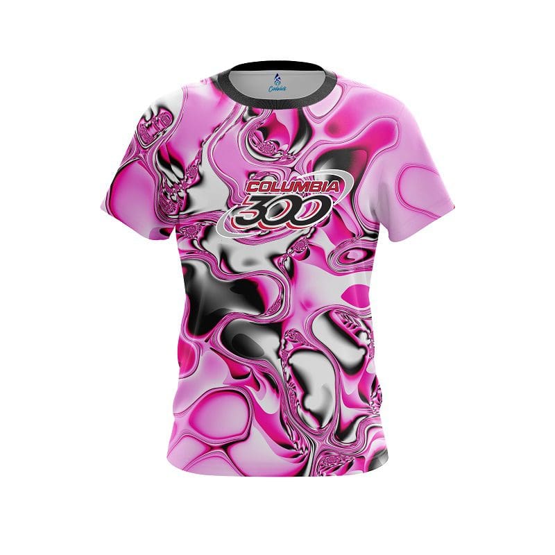 Stay 40% cooler with CoolWick. Our Columbia 300 Pink And White Liquid Canvas CoolWick Bowling Jerseys are made of two different fabrics with the back being our CoolWick technology fabric that helps wick moisture away and helps air flow more easily through the fibers.