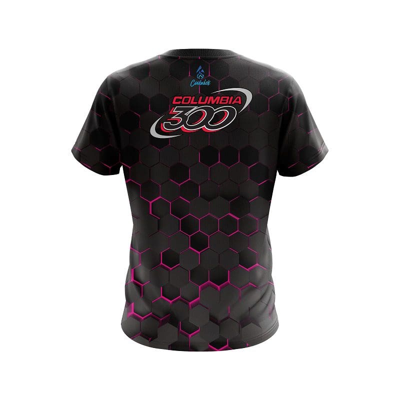 Stay 40% cooler with CoolWick. Our Columbia 300 Pink Honeycomb Fusion CoolWick Bowling Jerseys are made of two different fabrics with the back being our CoolWick technology fabric that helps wick moisture away and helps air flow more easily through the fibers.