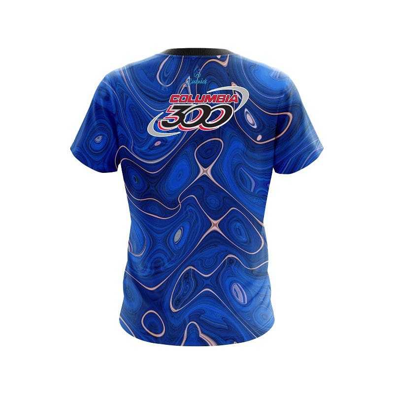 Stay 40% cooler with CoolWick. Our Columbia 300 Psychedelic Blue Flow CoolWick Bowling Jerseys are made of two different fabrics with the back being our CoolWick technology fabric that helps wick moisture away and helps air flow more easily through the fibers.