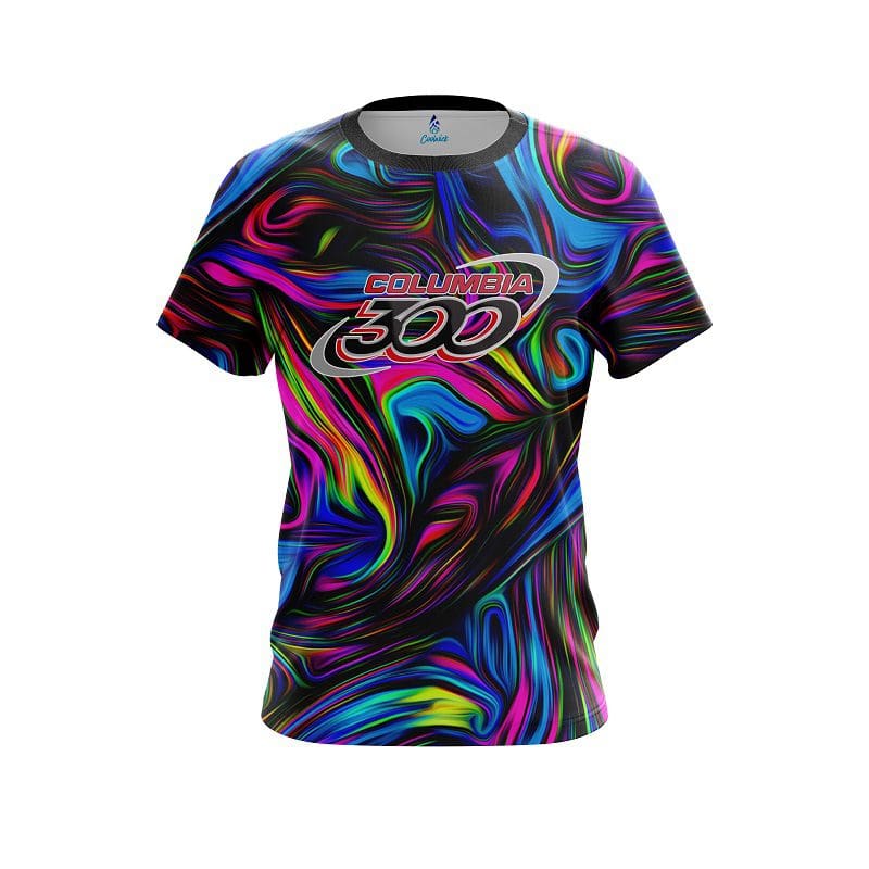 Stay 40% cooler with CoolWick. Our Columbia 300 Psychedelic Swirl CoolWick Bowling Jerseys are made of two different fabrics with the back being our CoolWick technology fabric that helps wick moisture away and helps air flow more easily through the fibers.