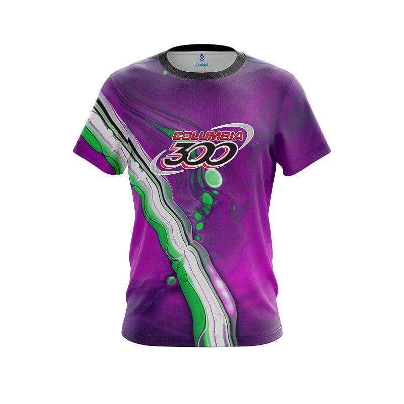 Stay 40% cooler with CoolWick. Our Columbia 300 Purple And Green Liquid CoolWick Bowling Jerseys are made of two different fabrics with the back being our CoolWick technology fabric that helps wick moisture away and helps air flow more easily through the fibers.