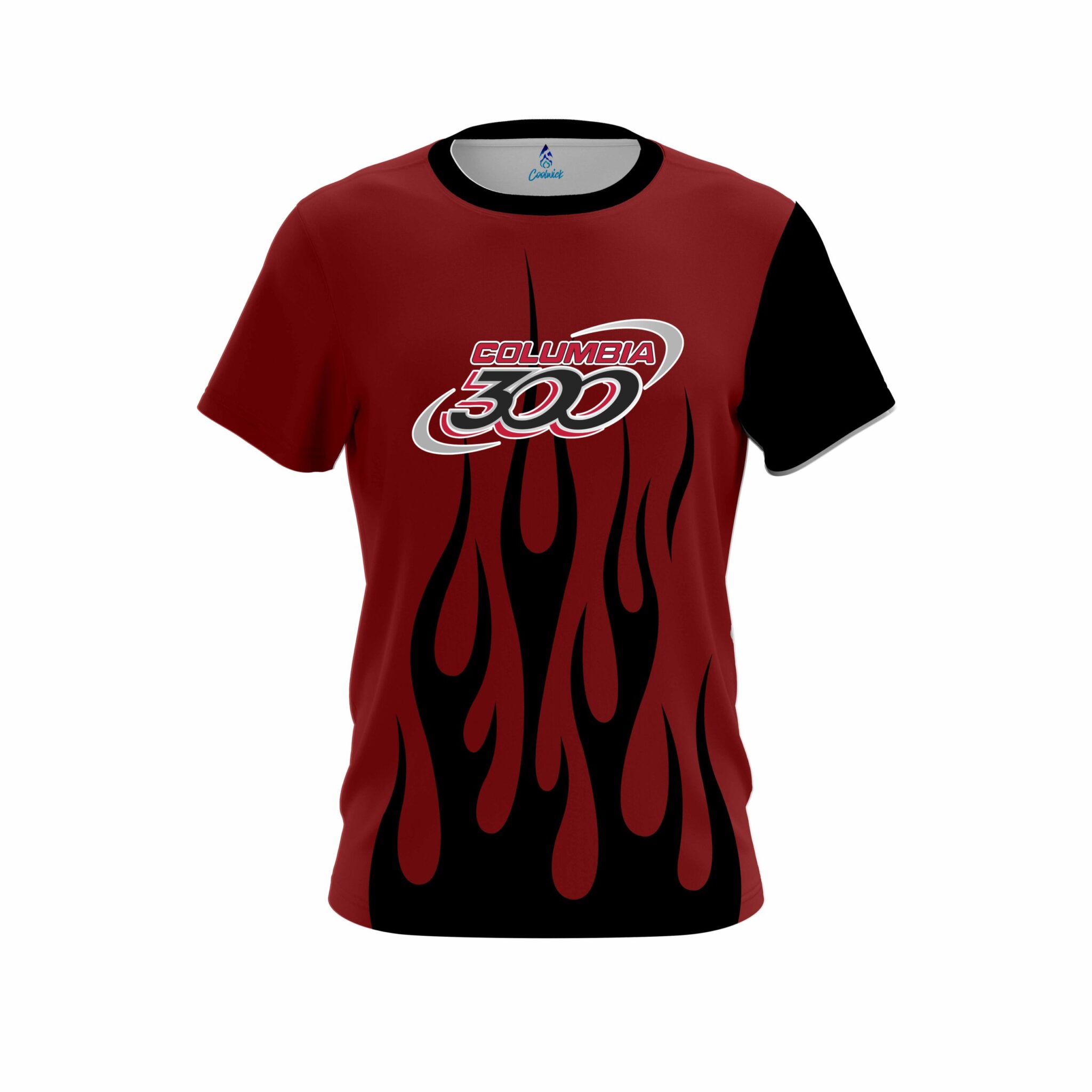 Stay 40% cooler with CoolWick. Our Columbia 300 Red Brick Flaming CoolWick Bowling Jerseys are made of two different fabrics with the back being our CoolWick technology fabric that helps wick moisture away and helps air flow more easily through the fibers.