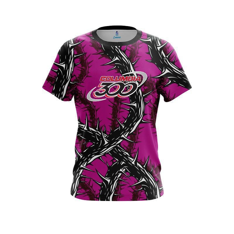 Stay 40% cooler with CoolWick. Our Columbia 300 Rock And Roll Pink Thorns CoolWick Bowling Jersey are made of two different fabrics with the back being our CoolWick technology fabric that helps wick moisture away and helps air flow more easily through the fibers.