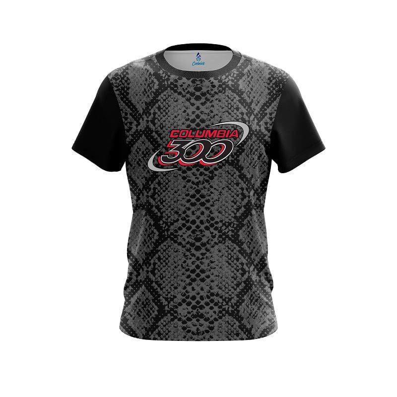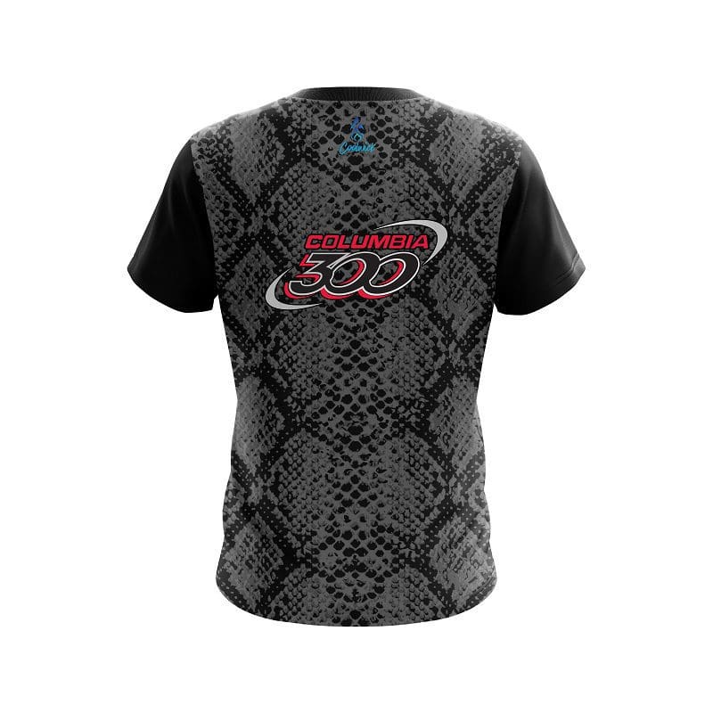 Stay 40% cooler with CoolWick. Our Columbia 300 Snake Skin Black CoolWick Bowling Jersey are made of two different fabrics with the back being our CoolWick technology fabric that helps wick moisture away and helps air flow more easily through the fibers.