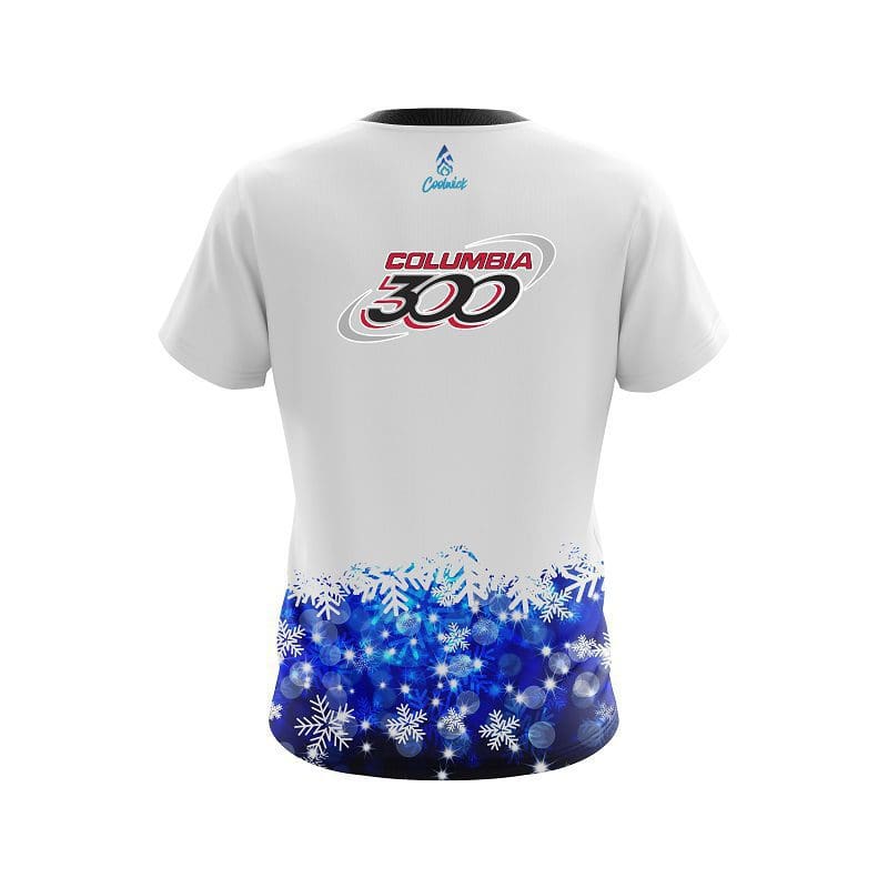 Stay 40% cooler with CoolWick. Our Columbia 300 Snowflake Season CoolWick Bowling Jerseys are made of two different fabrics with the back being our CoolWick technology fabric that helps wick moisture away and helps air flow more easily through the fibers.