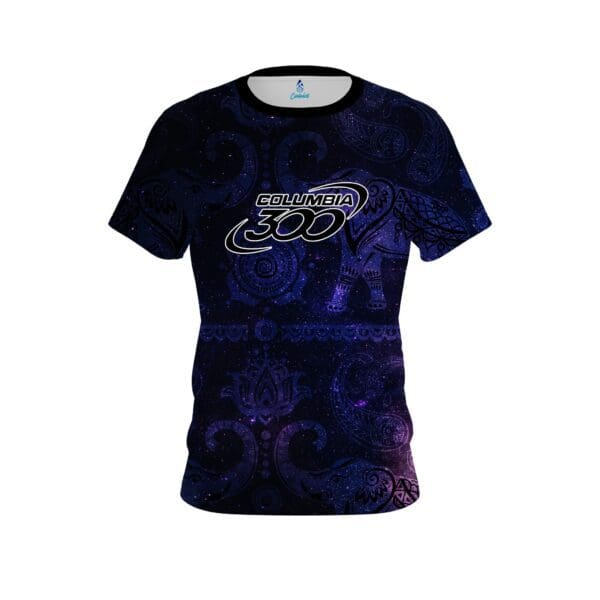 Stay 40% cooler with CoolWick. Our Columbia 300 Tribal Elephants Galaxy CoolWick Bowling Jersey are made of two different fabrics with the back being our CoolWick technology fabric that helps wick moisture away and helps air flow more easily through the fibers.