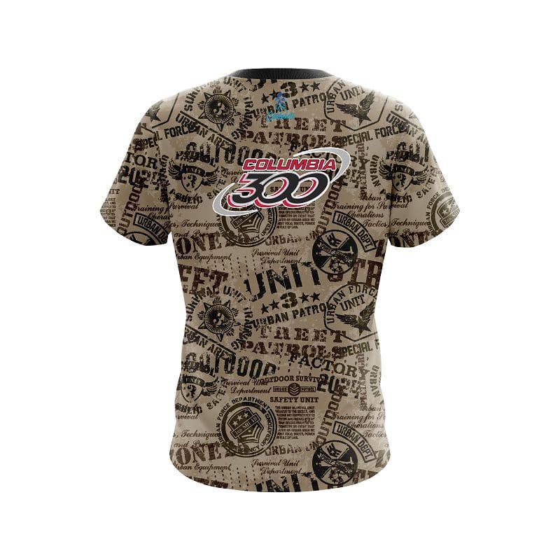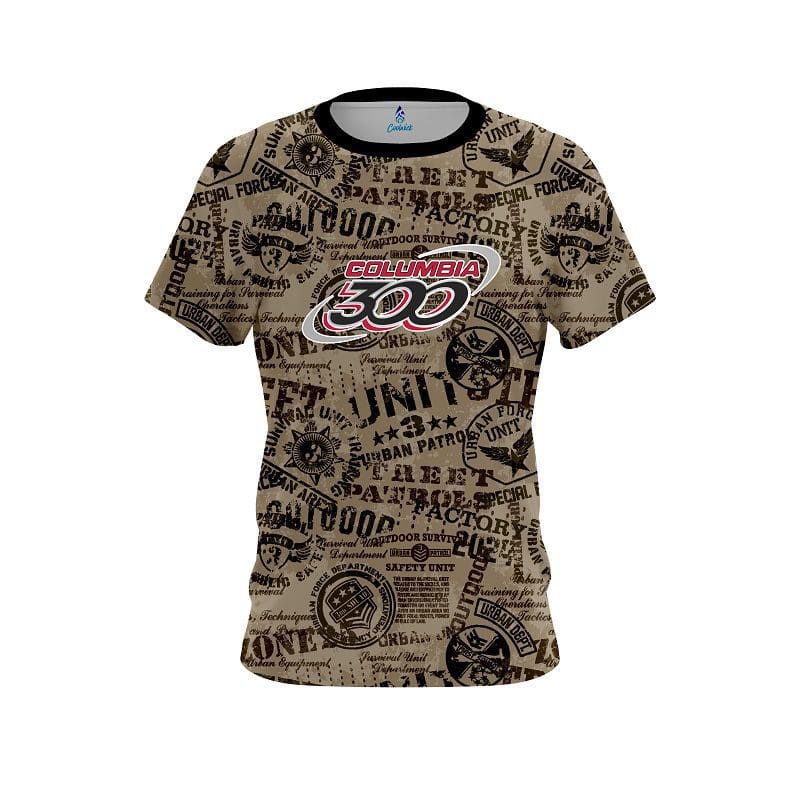 Stay 40% cooler with CoolWick. Our Columbia 300 Urban Military Grunge CoolWick Bowling Jerseys are made of two different fabrics with the back being our CoolWick technology fabric that helps wick moisture away and helps air flow more easily through the fibers.