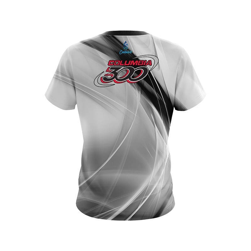 Stay 40% cooler with CoolWick. Our Columbia 300 Wavy Black And White Swirl CoolWick Bowling Jerseys are made of two different fabrics with the back being our CoolWick technology fabric that helps wick moisture away and helps air flow more easily through the fibers.