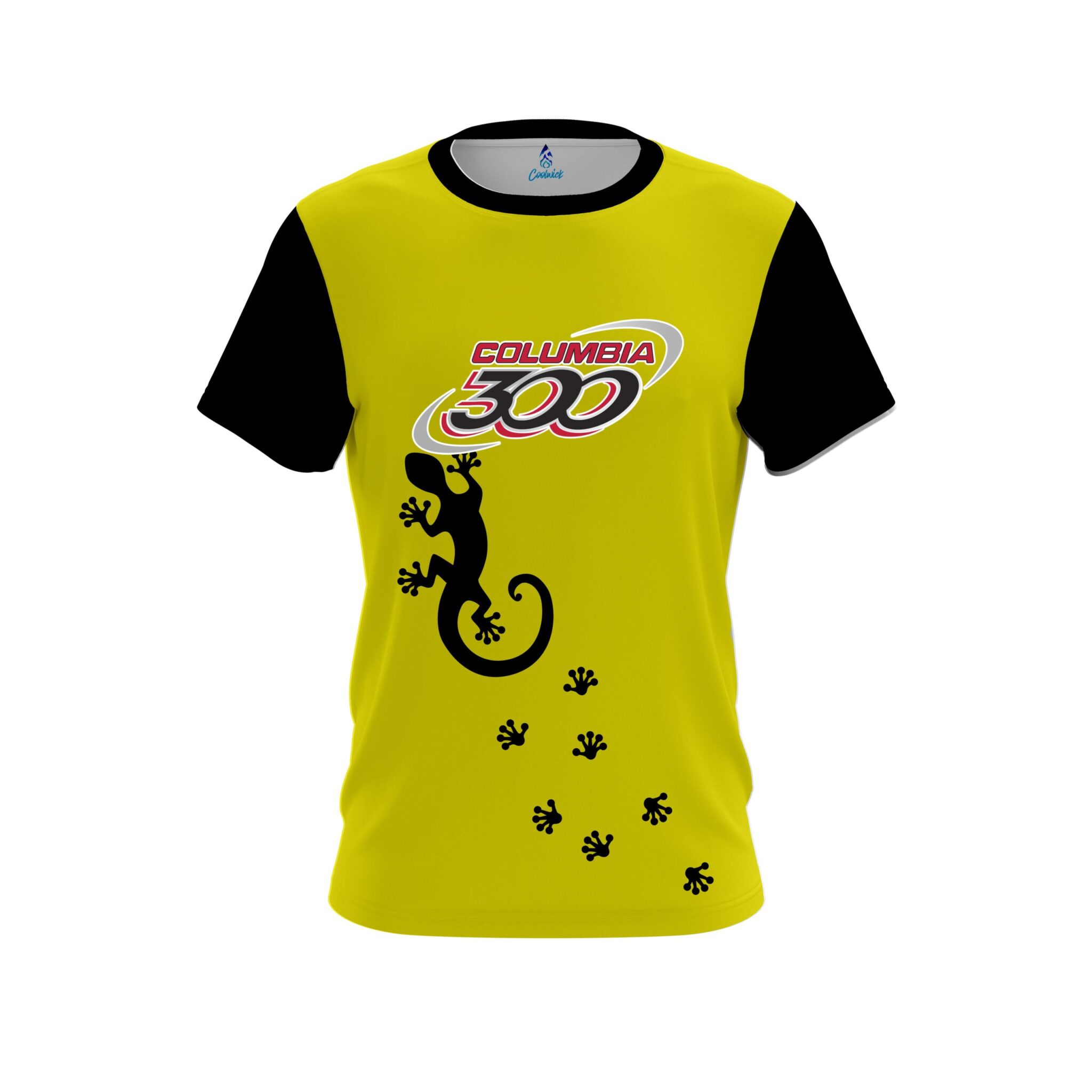 Stay 40% cooler with CoolWick. Our Columbia 300 Yellow Gecko CoolWick Bowling Jerseys are made of two different fabrics with the back being our CoolWick technology fabric that helps wick moisture away and helps air flow more easily through the fibers.