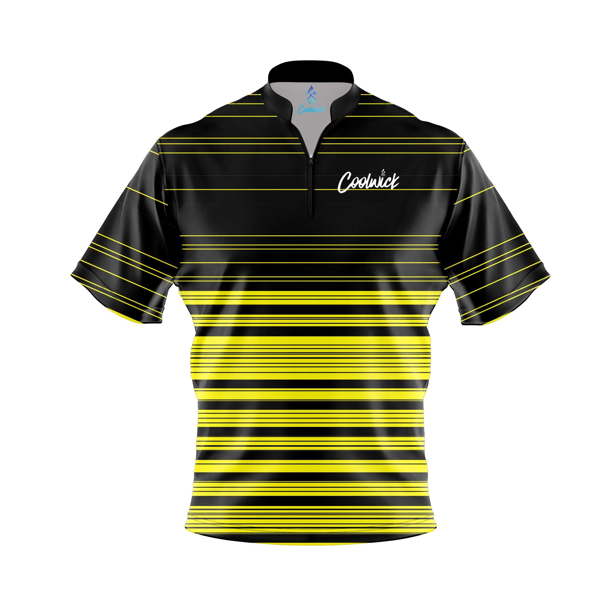 The CoolWick Elite Black and Yellow Stripes Sash Zip Jersey is part of the Quarter 1 2023 release. This sleek and stylish jersey will keep you cool and comfortable while you display a unique look on and off the lanes.