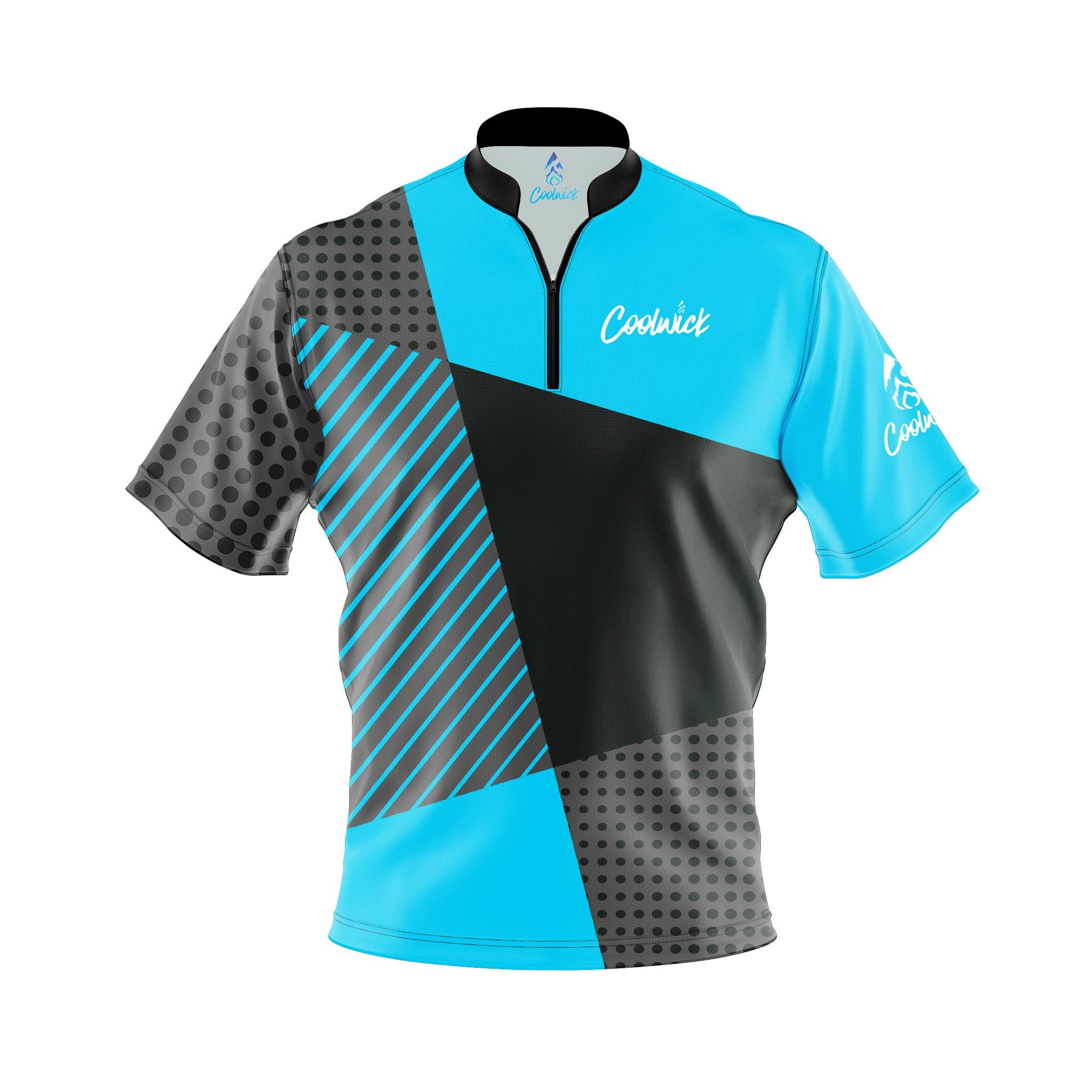 The CoolWick Elite Blue Complexity Sash Zip Jersey is the newest addition to our CoolWick Elite series. This sleek and stylish jersey will keep you cool and comfortable while you display a unique look on and off the lanes.