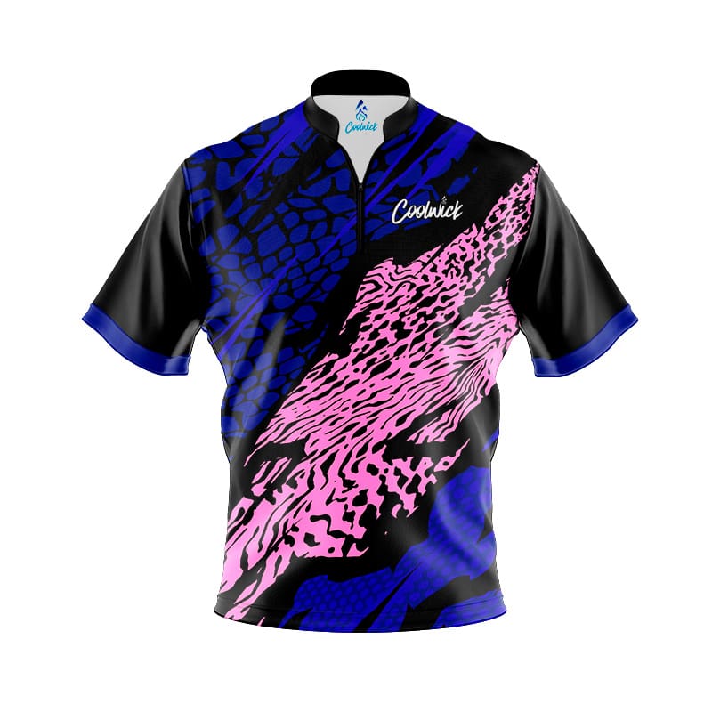 Get ready to roll with better style and comfort than ever before! Introducing the newest edition to the CoolWick Elite line of bowling jerseys – The CoolWick Elite Blue Pink Tiger Sash Zip Jersey. This dye-sublimated jersey, carefully crafted with attention to detail, is the perfect addition to your gear collection for the upcoming year!