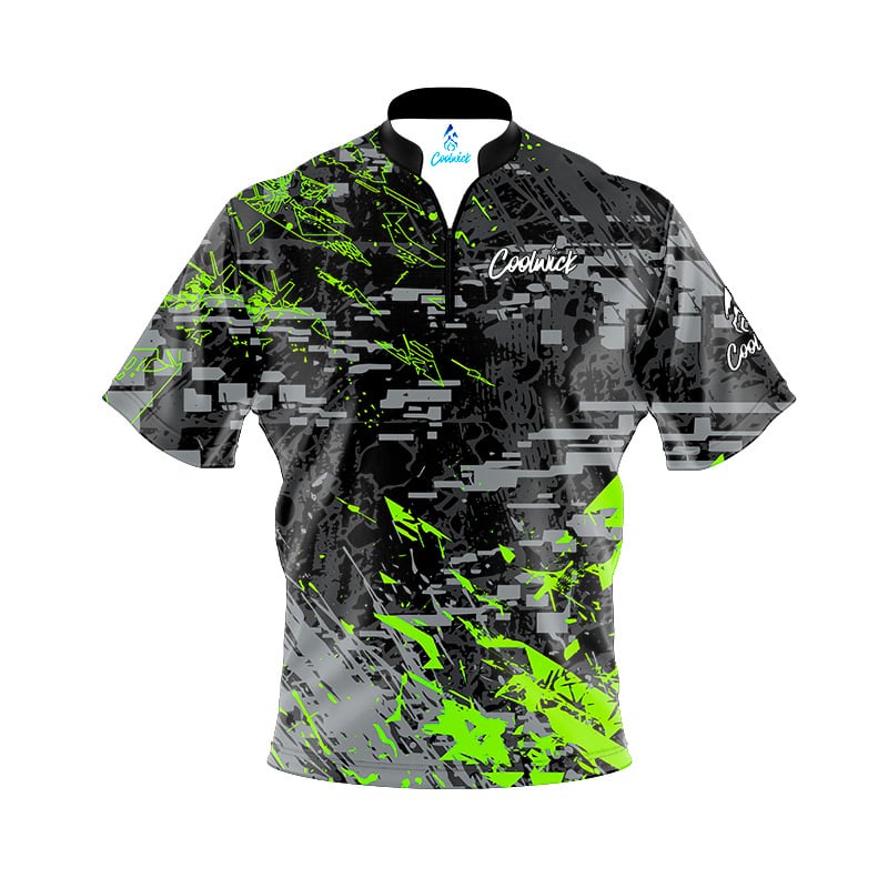 CoolWick Elite Glitching Black Green Sash Zip Jersey