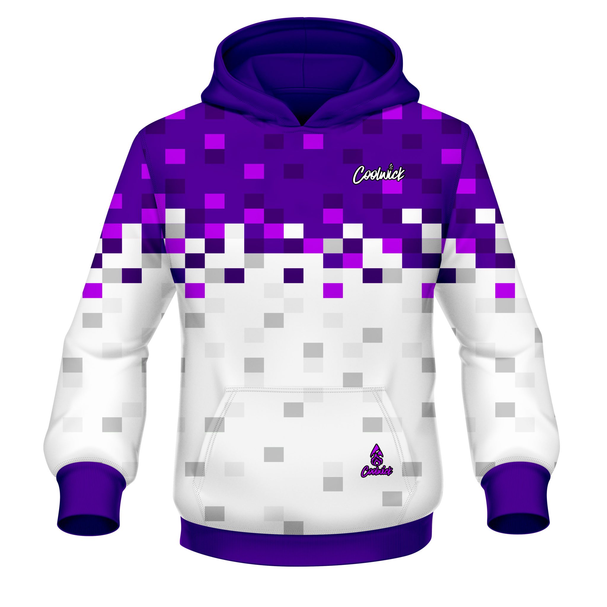 CoolWick Elite Purple Snowy Pixels Hoodie is part of the quarter 4 2022 release and is sleek and stylish. This Hoodie will keep you comfy and warm but also gives a unique look on the lanes.