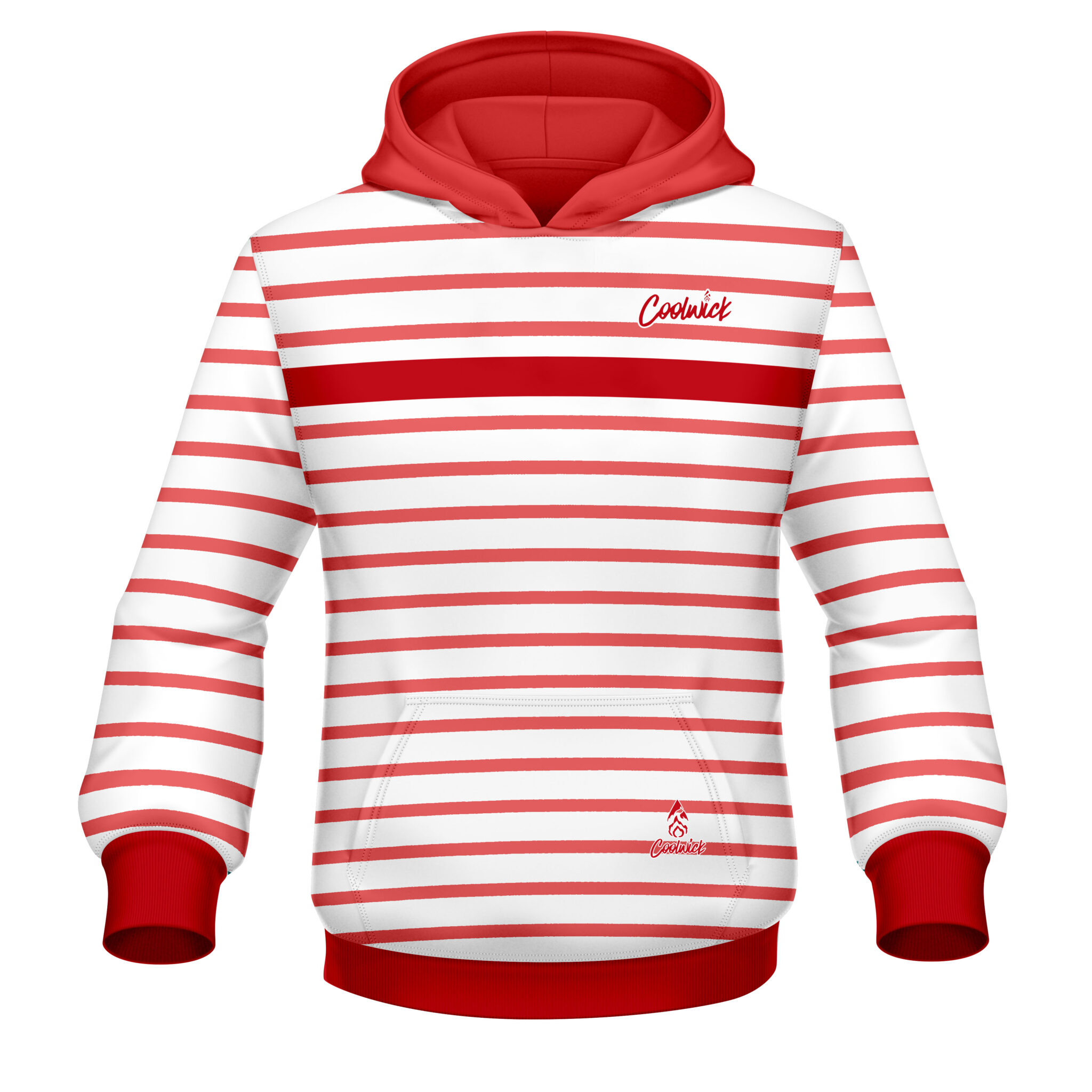 We are thrilled to introduce the newest addition to our iconic CoolWick Elite line! Behold the CoolWick Elite Red Stripe Pink White Hoodie, a vibrant recreation inspired by the success of our quarter 3 2022 Red Stripe hoodies. This hoodie showcases fresh colors while maintaining its timeless design.