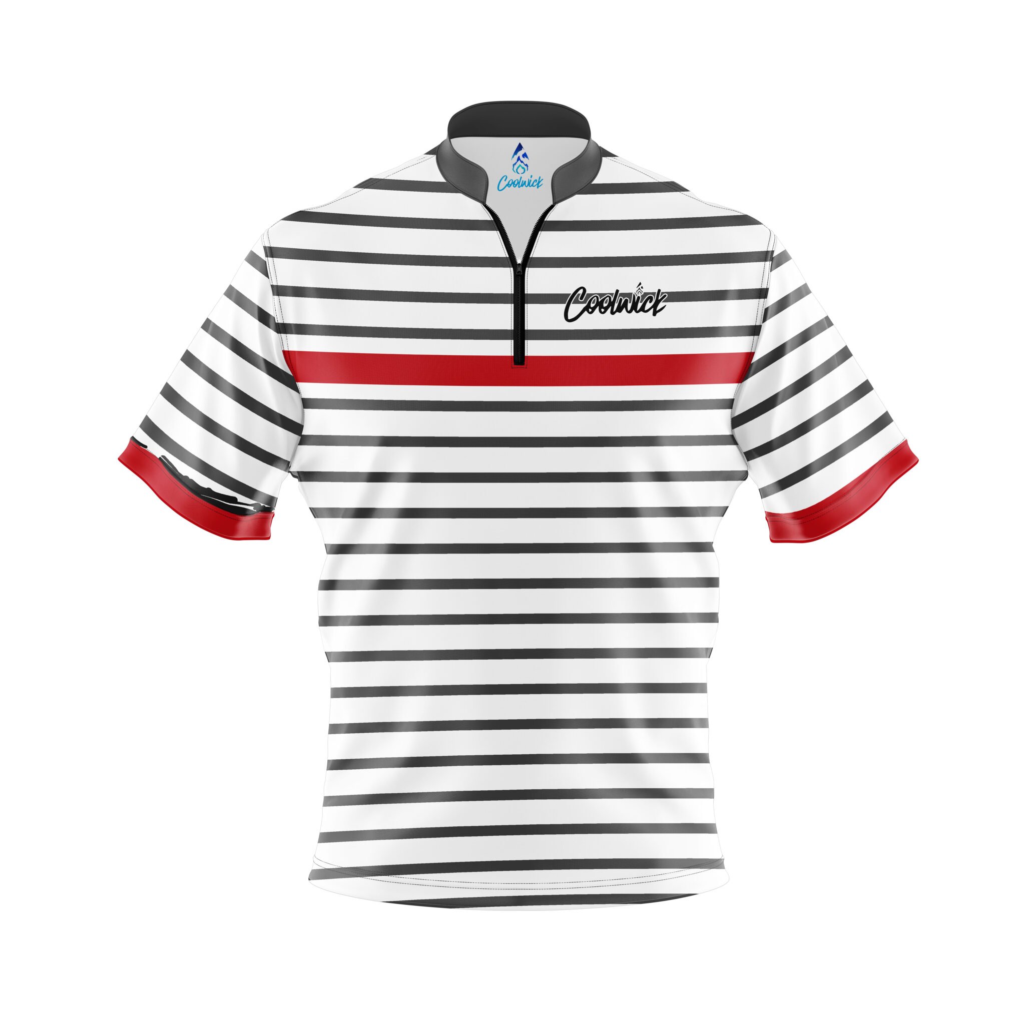 We are thrilled to introduce the newest addition to our iconic CoolWick Elite line! Behold the CoolWick Elite Red Stripe White Sash Zip Jersey, a vibrant recreation inspired by the success of our quarter 3 2022 Red Stripe jerseys. This jersey showcases fresh colors while maintaining its timeless design. Carefully crafted with premium materials, this product proudly features a distinctive sash zip collar.