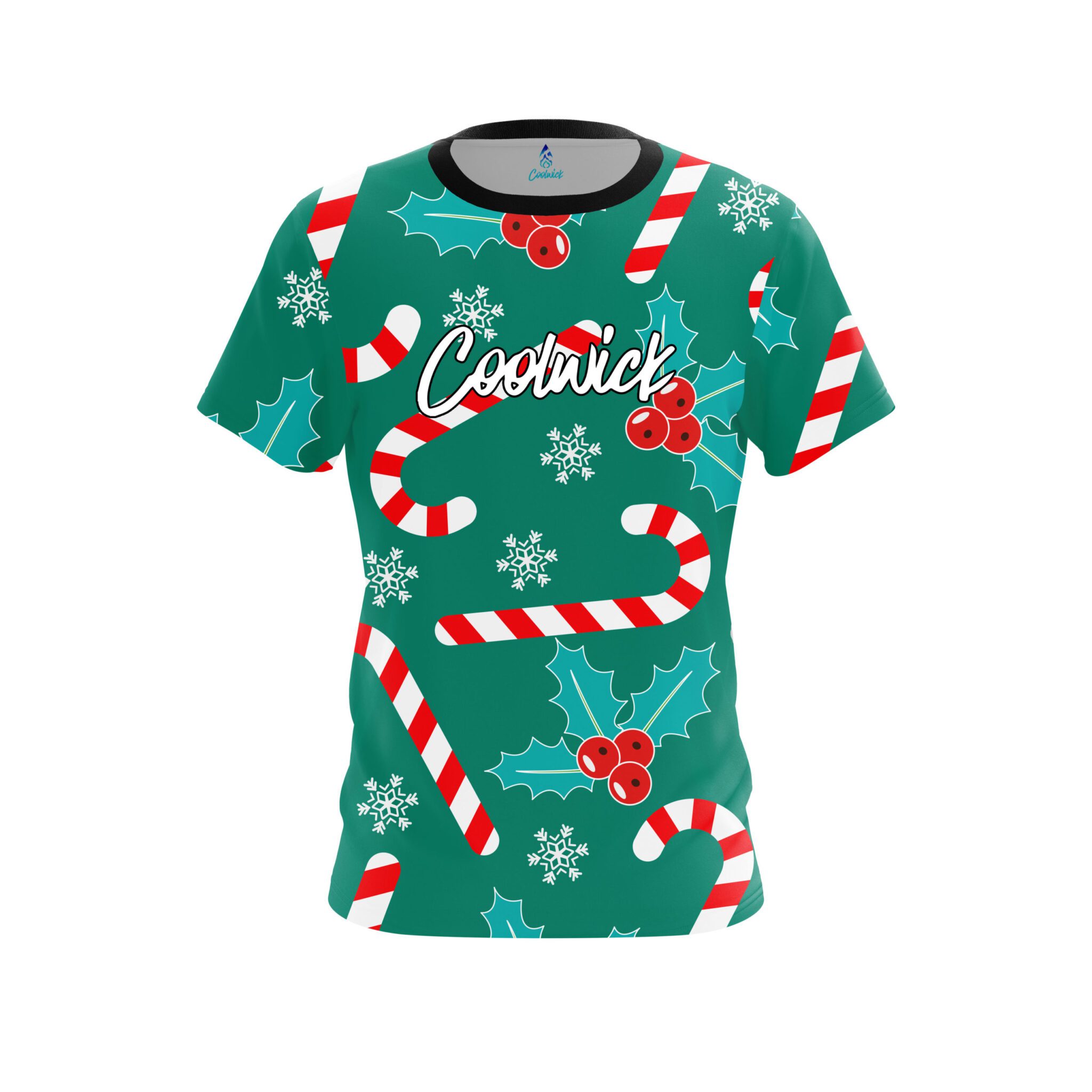Stay 40% cooler with CoolWick. Our Coolwick Merry Candy Cane CoolWick Bowling Jersey are made of two different fabrics with the back being our CoolWick technology fabric that helps wick moisture away and helps air flow more easily through the fibers.
