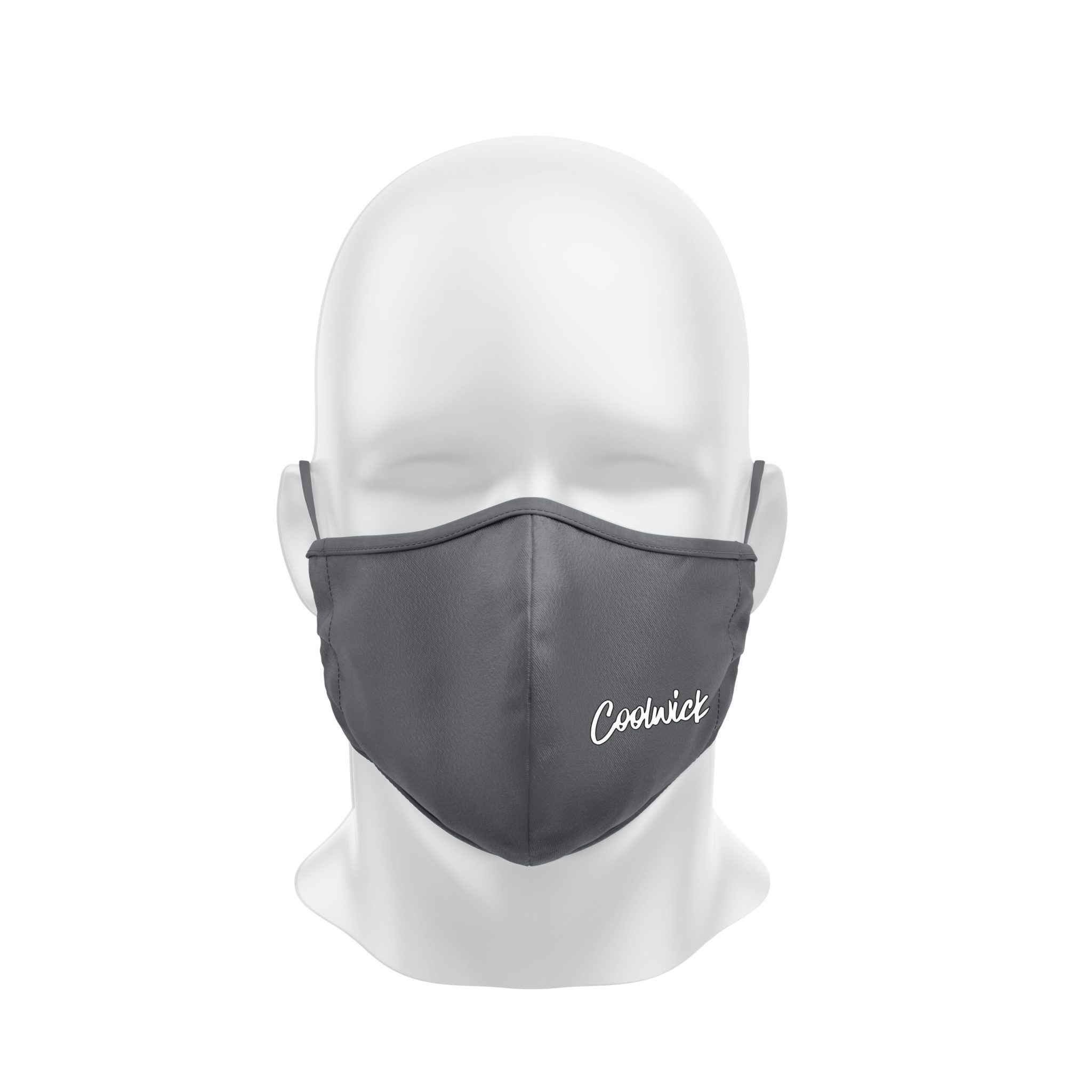 Stay 40% cooler with CoolWick. Our Steel Grey dye sublimated masks are two-ply and 100% polyester that covers the wearer’s nose and mouth. Our masks are made of fabric that helps wick moisture away and helps air flow more easily through the fibers. The fabric binding has a slight stretch, while ear loops and a center seam help hold it comfortably in place all day.