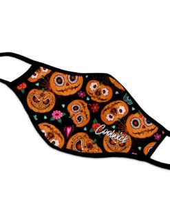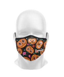 Stay 40% cooler with CoolWick. Our Sugar Skull Pumpkins dye sublimated masks are two-ply and 100% polyester that covers the wearer’s nose and mouth. Our masks are made of fabric that helps wick moisture away and helps air flow more easily through the fibers. The fabric binding has a slight stretch, while ear loops and a center seam help hold it comfortably in place all day.