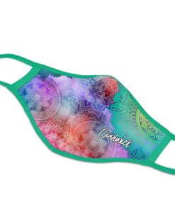 Stay 40% cooler with CoolWick. Our Teal Mandala dye sublimated masks are two-ply and 100% polyester that covers the wearer’s nose and mouth. Our masks are made of fabric that helps wick moisture away and helps air flow more easily through the fibers. The fabric binding has a slight stretch, while ear loops and a center seam help hold it comfortably in place all day.