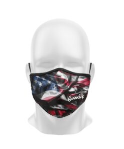 Stay 40% cooler with CoolWick. Our USA Distressed dye sublimated masks are two-ply and 100% polyester that covers the wearer’s nose and mouth. Our masks are made of fabric that helps wick moisture away and helps air flow more easily through the fibers. The fabric binding has a slight stretch, while ear loops and a center seam help hold it comfortably in place all day.