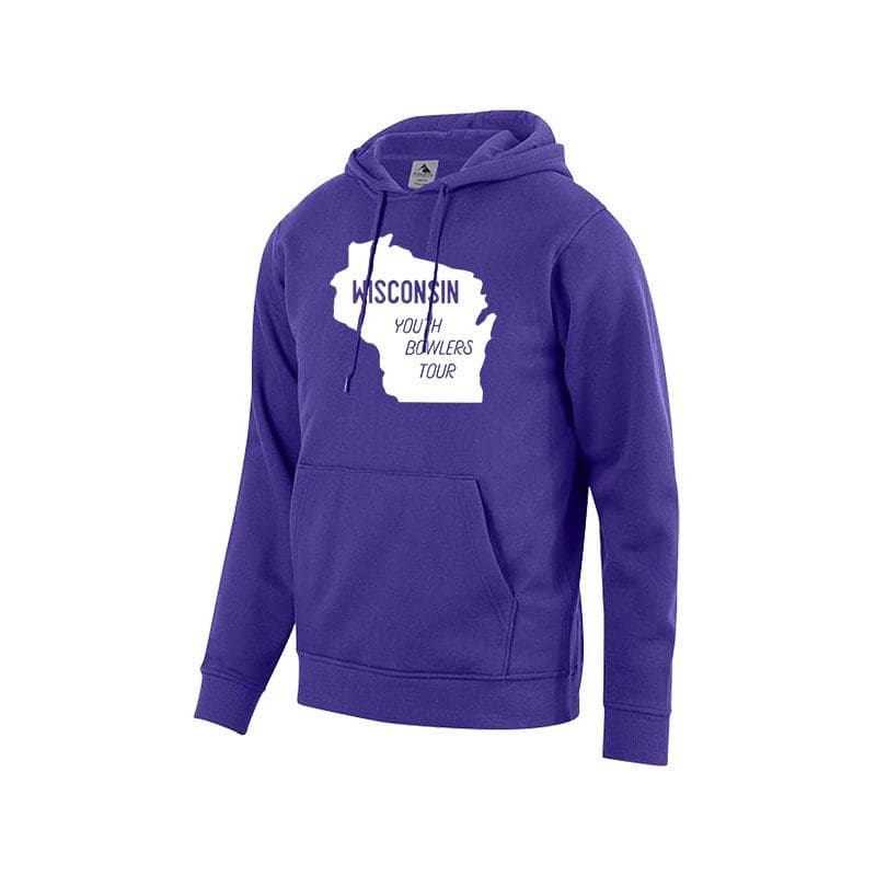 Stay 40% cooler with CoolWick. Our Wisconsin YBT Purple Youth Bowling Hoodie