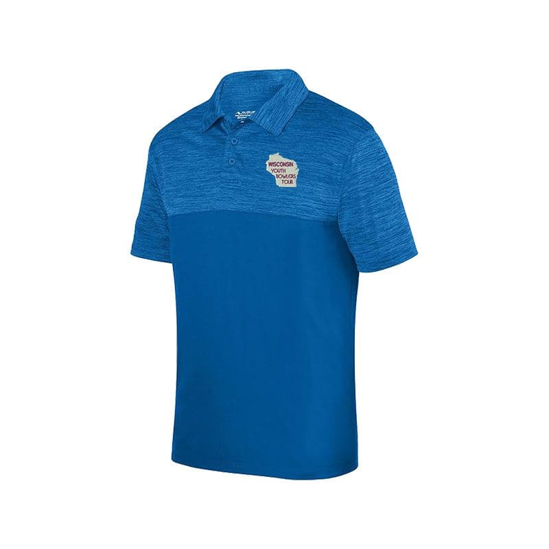 4.3 ounce 100% polyester heathered wicking knit top body, collar and sleeves