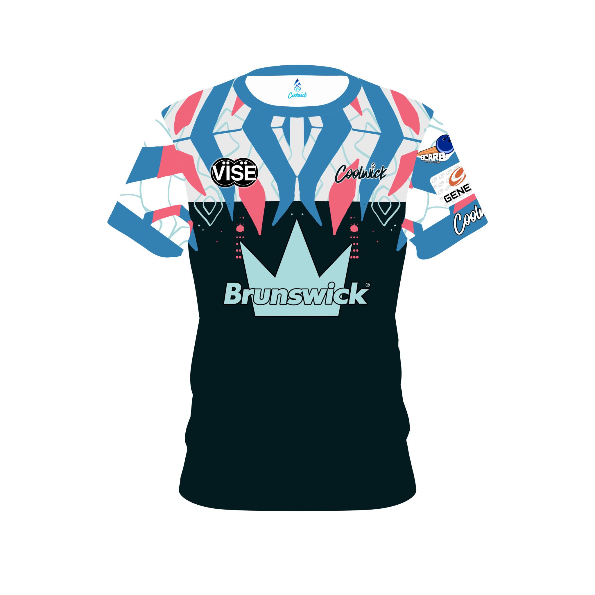 Designed, cut and sewn by hand stay 40% cooler with CoolWick. Our Dasha Kovalova Pattern Fun Replica CoolWick Bowling Jerseys are made of two different fabrics with the back being our CoolWick technology fabric that helps wick moisture away and helps air flow more easily through the fibers.